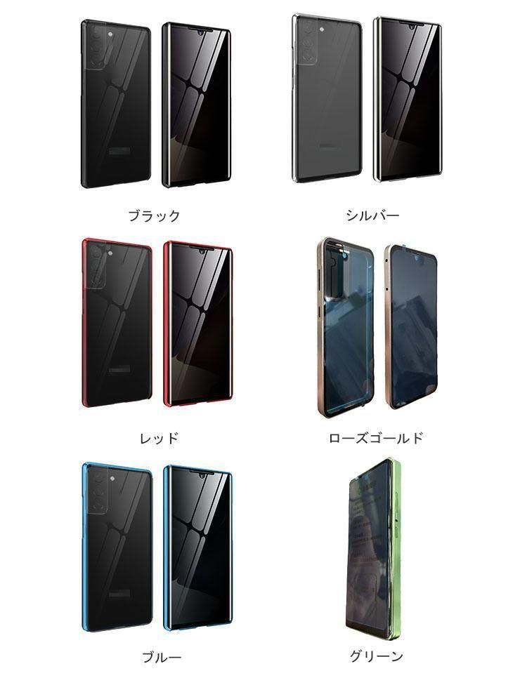 Samsung Galaxy S21 5G/S21+ 5G/S21 Ultra 5G クリア 透明 両面 前後 ガラス マグネット 強化ガラス 覗き見防止 アルミサイドバンパー MGK6