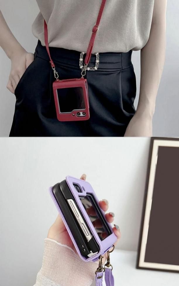 Samsung Galaxy Z Flip5 スマホショルダー ケース PUレザー 落下防止 ショルダー 肩掛けベルト付き エレガント Qi充電 ワイヤレス充電 対応