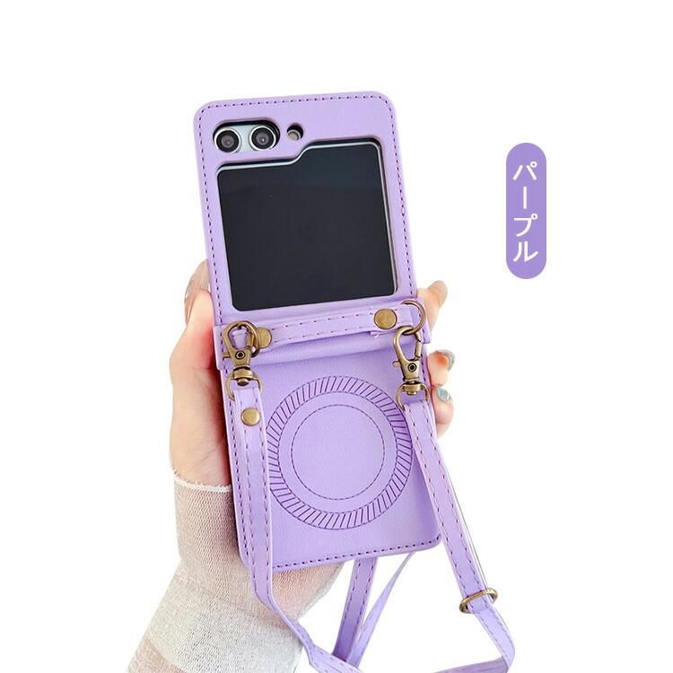 Samsung Galaxy Z Flip5 スマホショルダー ケース PUレザー 落下防止 ショルダー 肩掛けベルト付き エレガント Qi充電 ワイヤレス充電 対応 サムスン ギャラクシーZ フリップ5 アンドロイド おすすめ おしゃれ スマートフォン/スマホケース/カバー