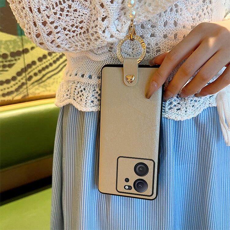 Xiaomi 13T ケース 13T Pro ケース /カバー PUレザー ケース ラインストーン 真珠風ストラップ付き 持ち手 ハンドストラップ 落下防止 片手操作