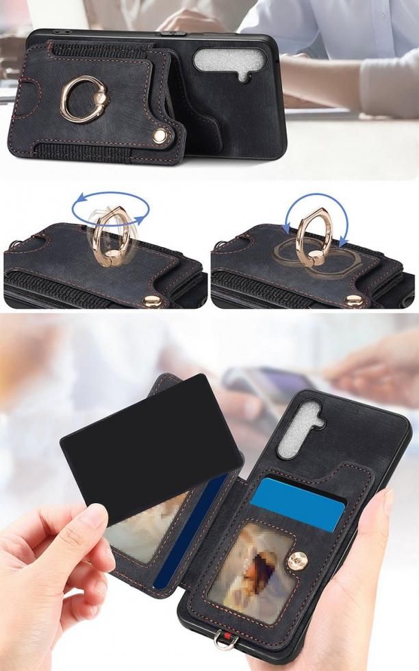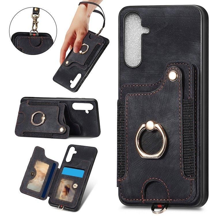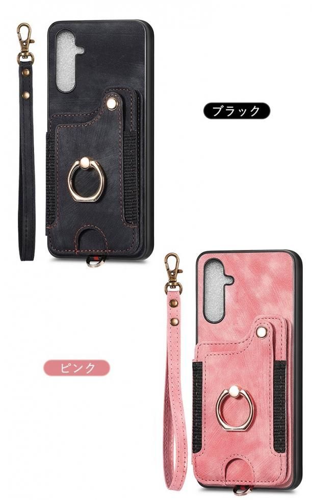 Galaxy A55 5G ケース カバー 耐衝撃 ストラップ付き PUレザー カード収納 片手持ちに便利なリング付き スタンド機能 Samsung スリム サムスン ギャラクシー A55 5G ソフトケース アンドロイド おすすめ おしゃれ スマートフォン/スマホケース/カバー
