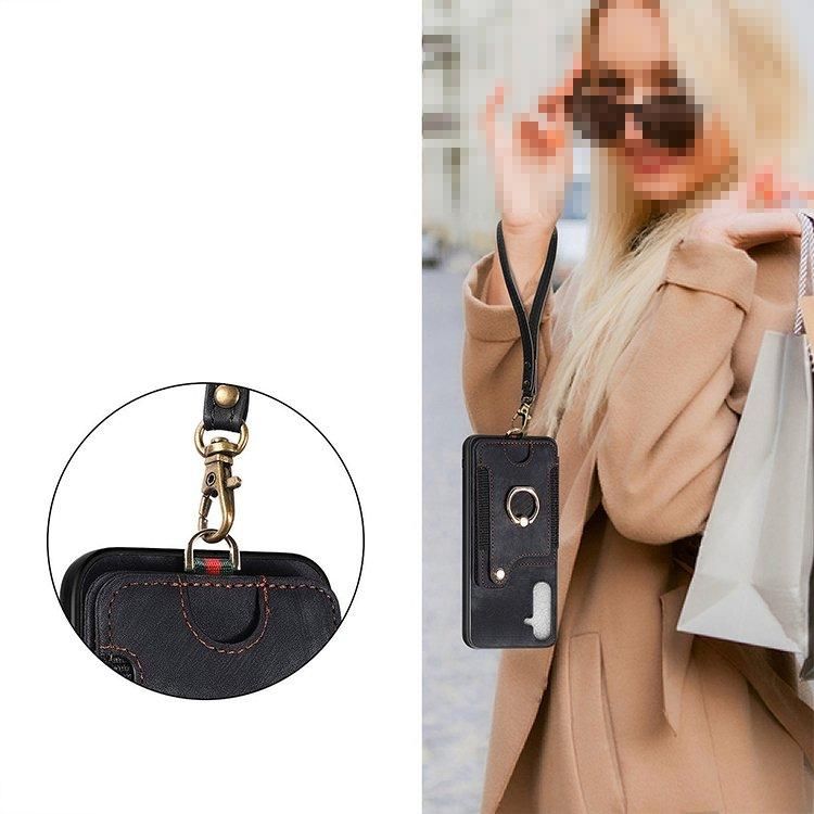 Galaxy A55 5G ケース カバー 耐衝撃 ストラップ付き PUレザー カード収納 片手持ちに便利なリング付きスタンド機能