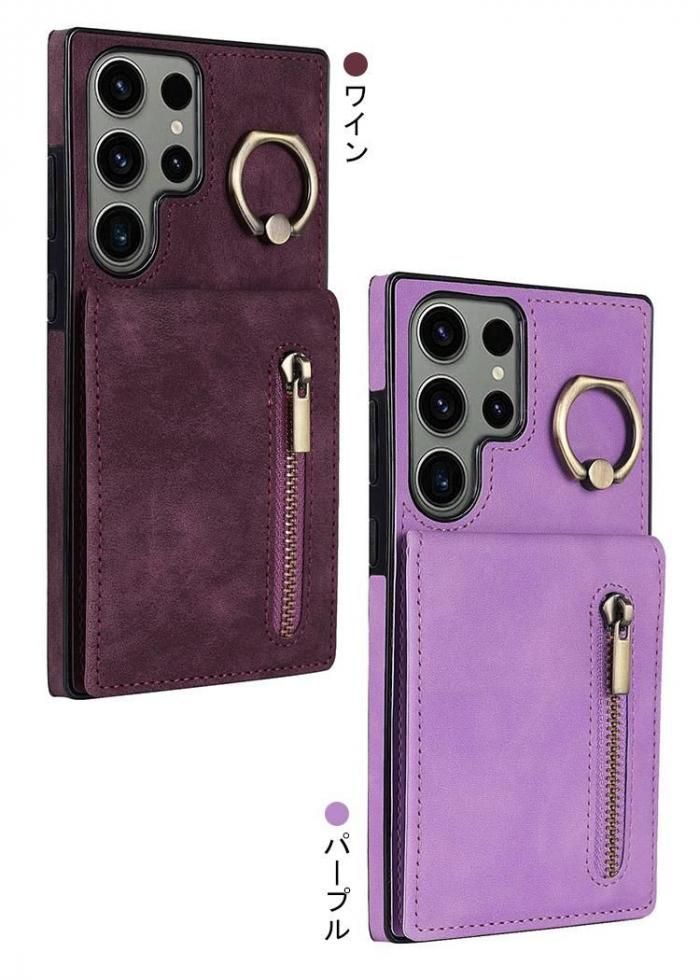 Galaxy S24 ケース S24+/S24 Ultra カバー 耐衝撃 PUレザー 一体型リング付き 背面レザーケース アンドロイド ケース Samsung サムスン ギャラクシー