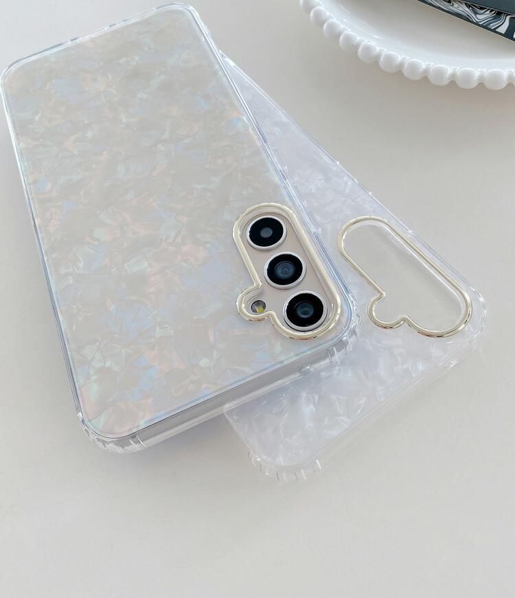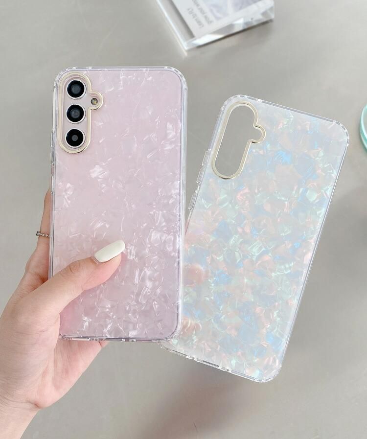 Galaxy A55 5G ケース ストラップホール付き かわいい ホログラム レディース シェル風 Samsung サムスン ギャラクシー A55 5G