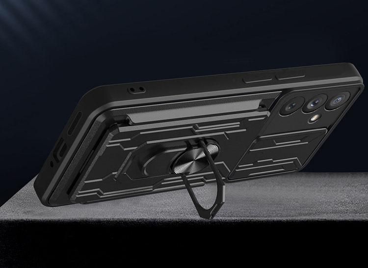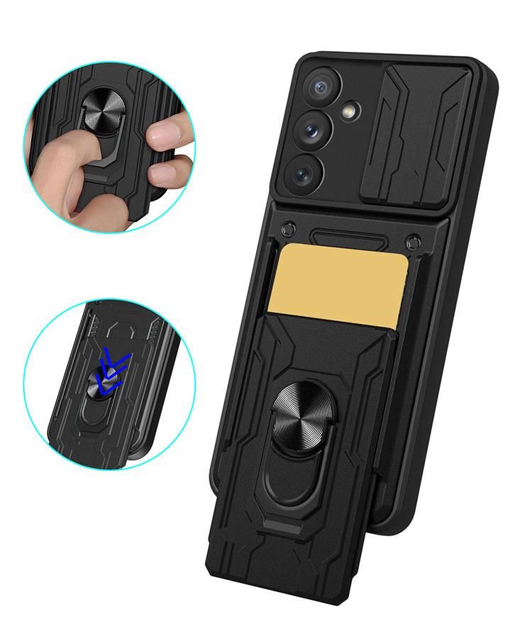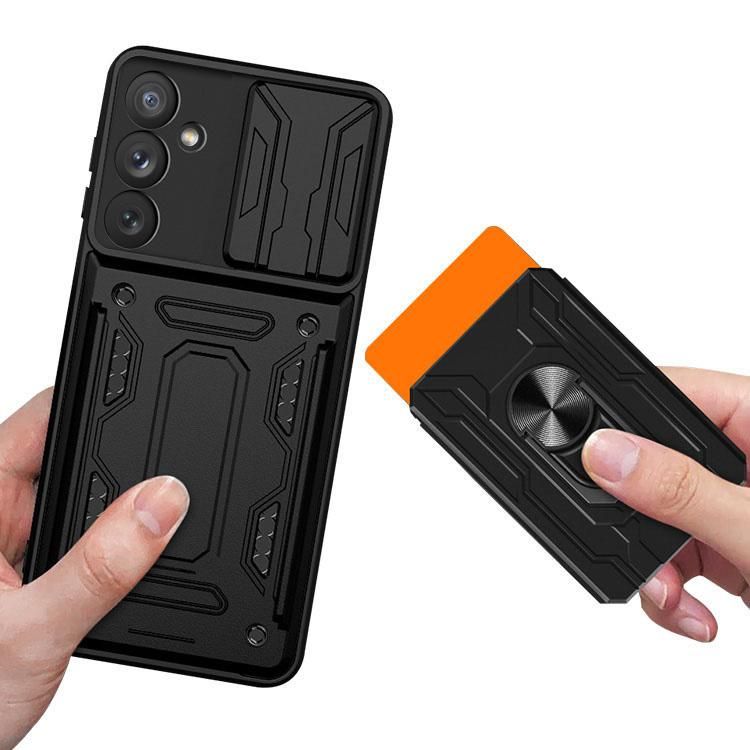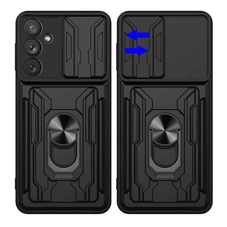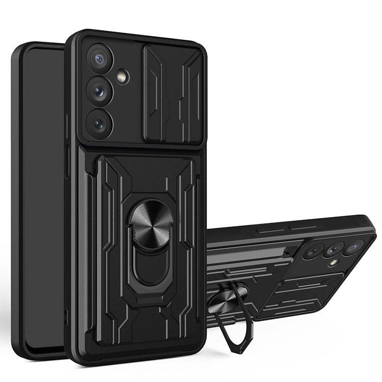 Galaxy S23 FE 耐衝撃 ケース カバー スライド式カメラレンズカバー付き レンズ保護 一体型リング付き カード収納