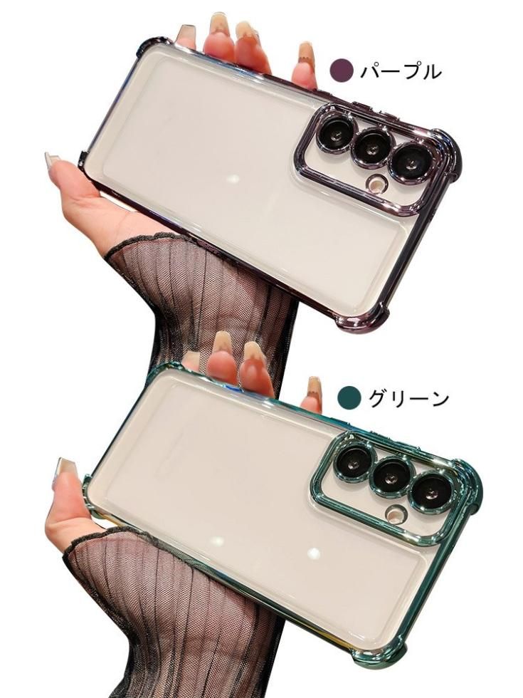 Galaxy S23 FE ケース カメラ保護ありカバー TPU+ポリカーボネート 透明 メッキ 背面ケース エレガント Samsung サムスン ギャラクシー S23 FE