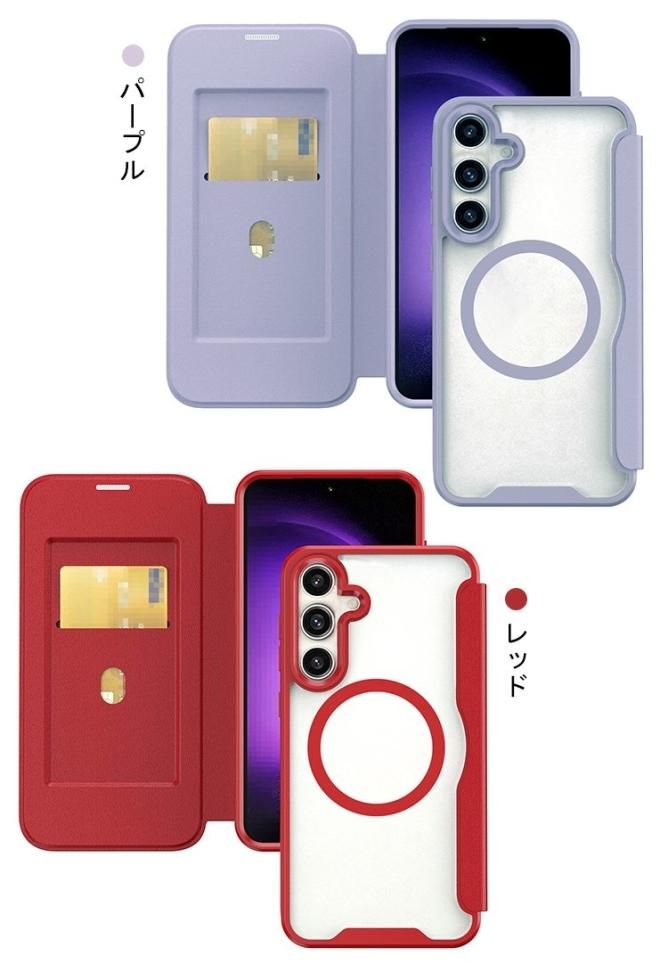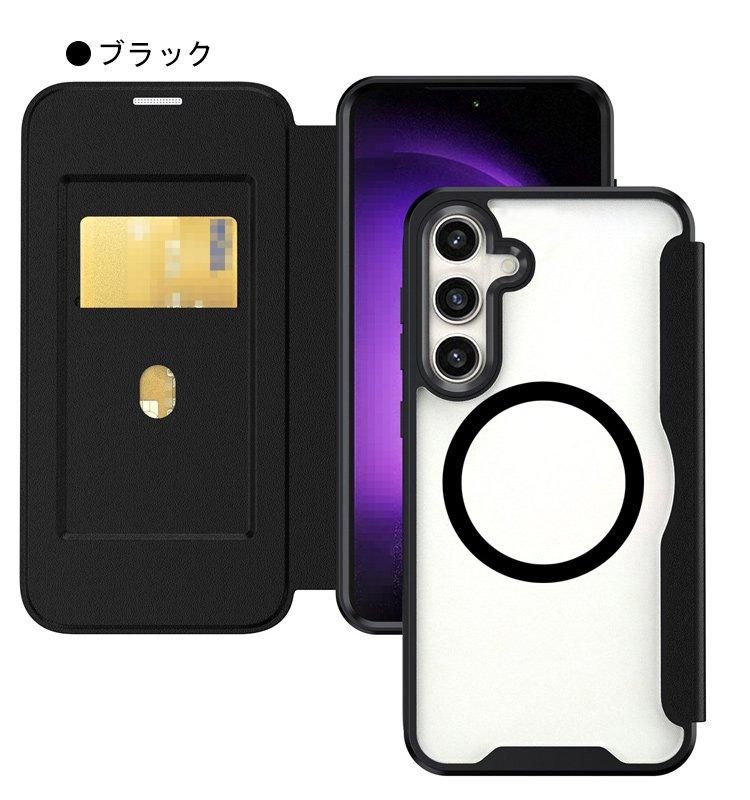 Galaxy S23 FE ケース カバー 手帳型 PUレザー クリア 背面透明 カード収納 ストラップ穴 Samsung サムスン ギャラクシー S23 FE