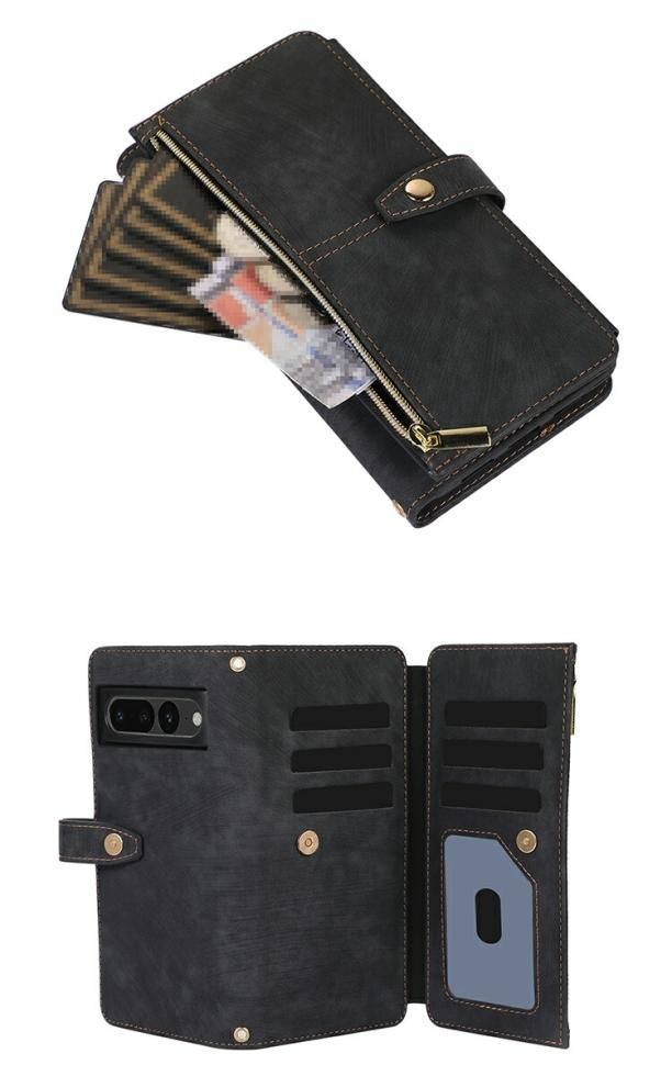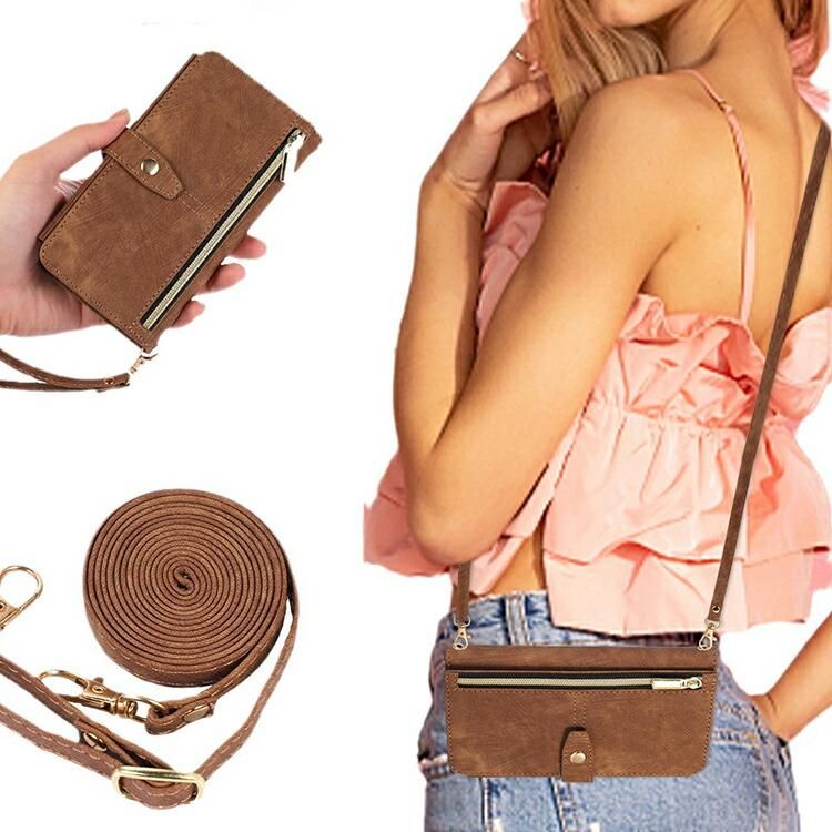 Pixel8a ケース スマホショルダー カバー 手帳型 PUレザー ファスナー付きポケット カード収納 ストラップ 落下防止 ショルダー 肩掛けベルト付き