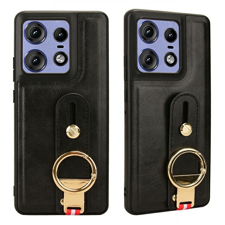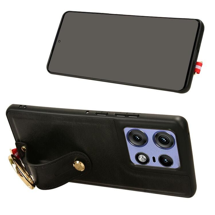 Motorola Edge 50 Pro ケース 耐衝撃 カバー PUレザー+プラスチック 持ち手 ベルト 落下防止ベルト