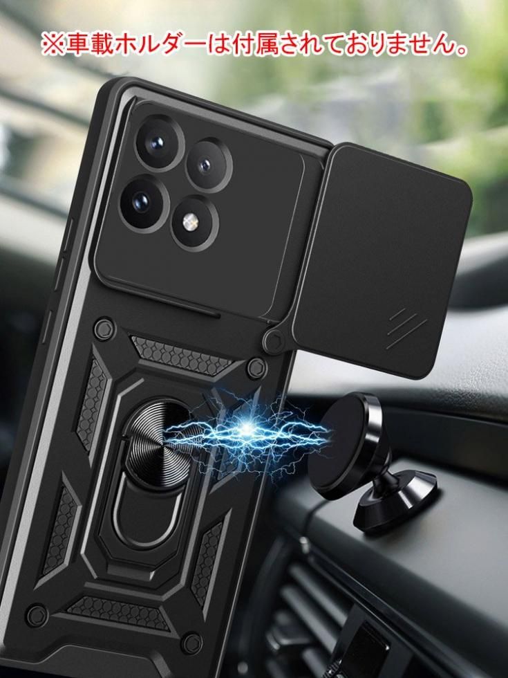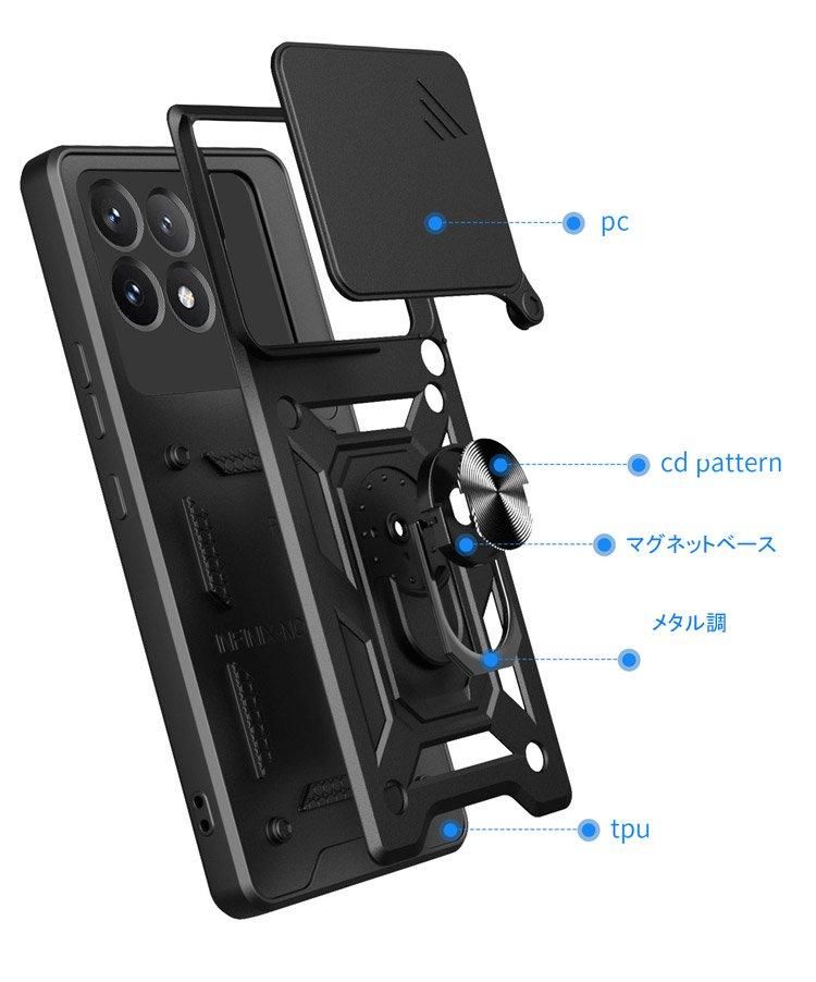 POCO F6 Pro ケース スライド式カメラレンズカバー付き レンズ保護 一体型リング付き マグネット式車載ホルダー対応 シャオミ Xiaomi ポコ F6 プロ