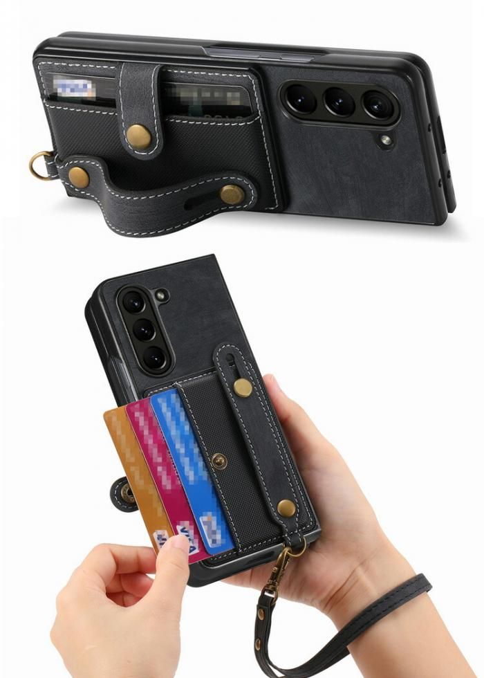 Galaxy Z Fold 6 ケース カバー 折りたたみ型 カード収納付き 持ち手 ベルト スマホバンド PUレザー Samsung サムスン ギャラクシー Z フォールド6