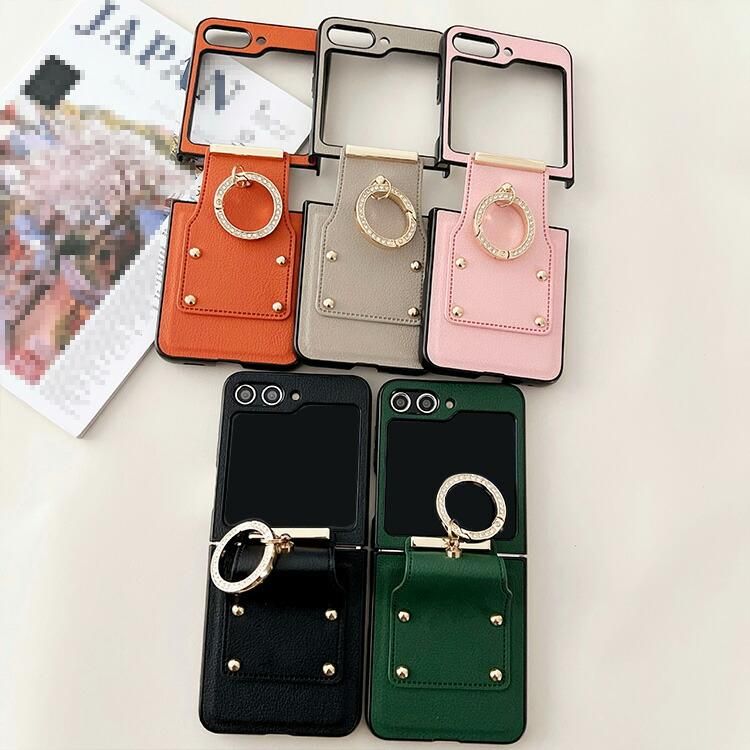 Galaxy Z Flip6 ケース 耐衝撃 カバー 折りたたみ型 一体型リング付き PUレザー スタンド機能