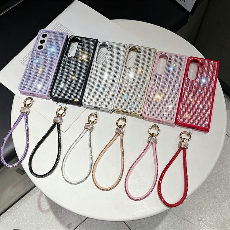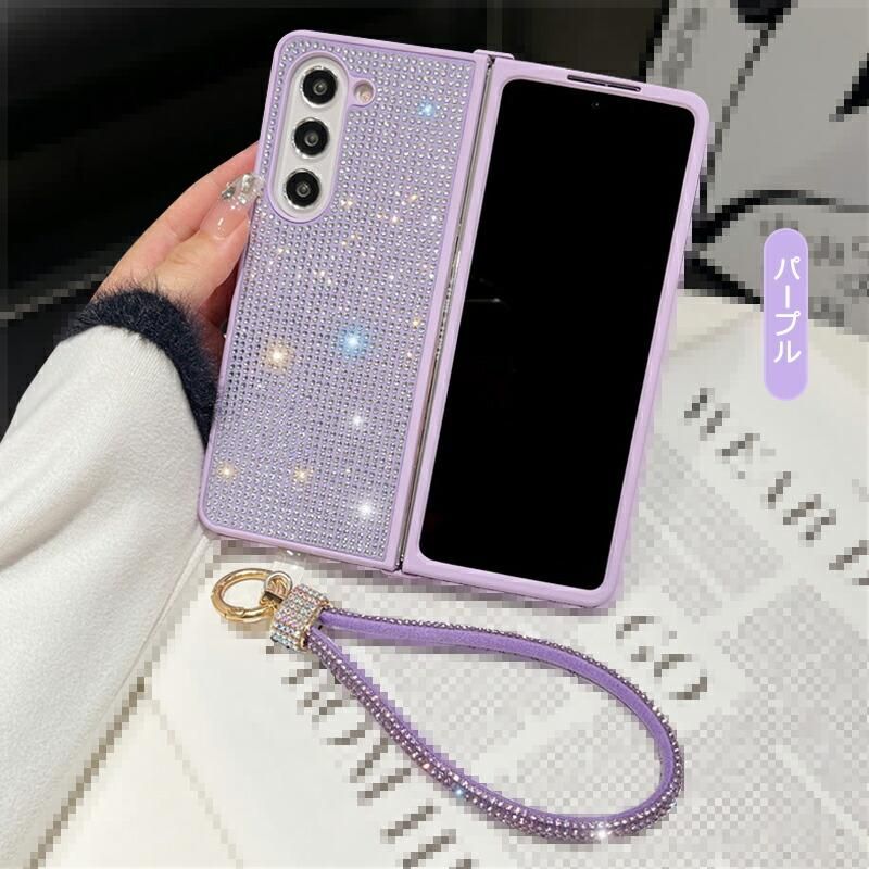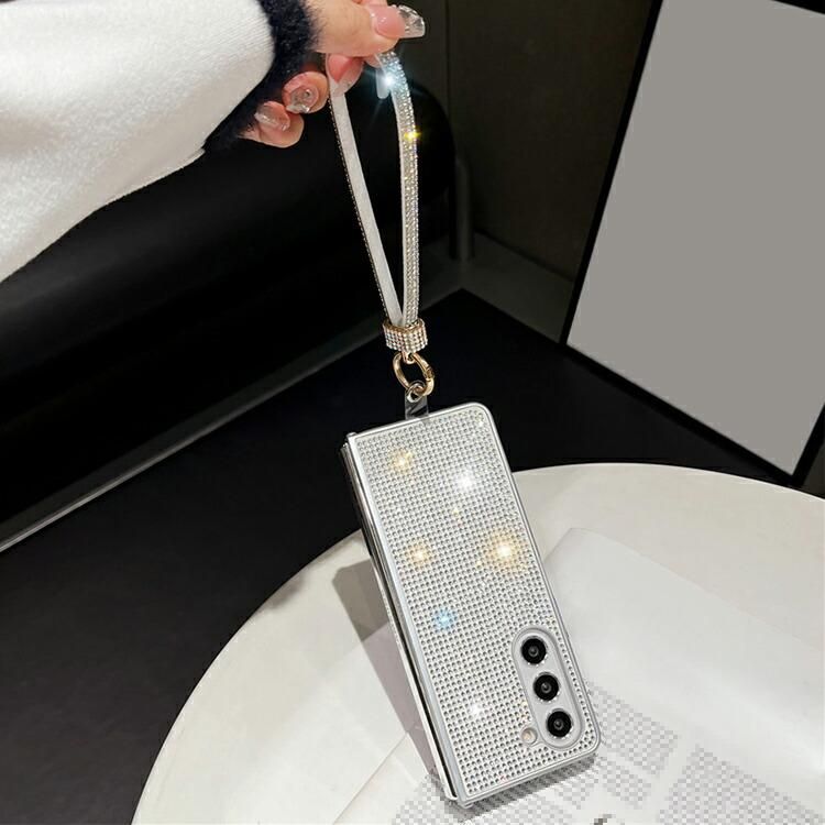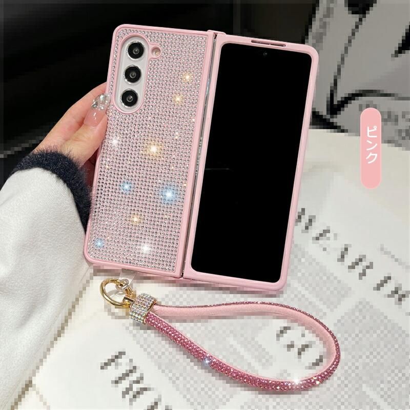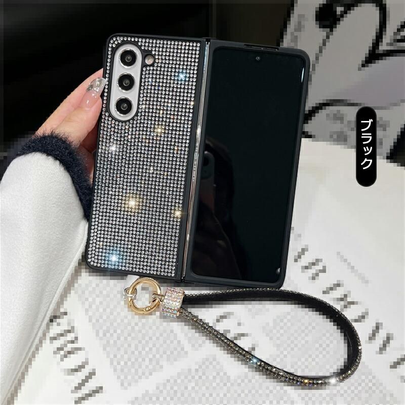 Galaxy Z Fold6 ケース 耐衝撃 カバー 折りたたみ型 持ち手 ベルト スマホバンド 落下防止ベルト ストラップ付き シンプル ラインストーン