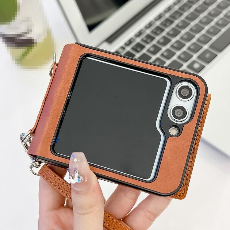 Galaxy Z Flip6 ケース / カバー スマホショルダー 折りたたみ型 ショルダーストラップ 肩掛けベルト付き 長さ調節可能 カード収納