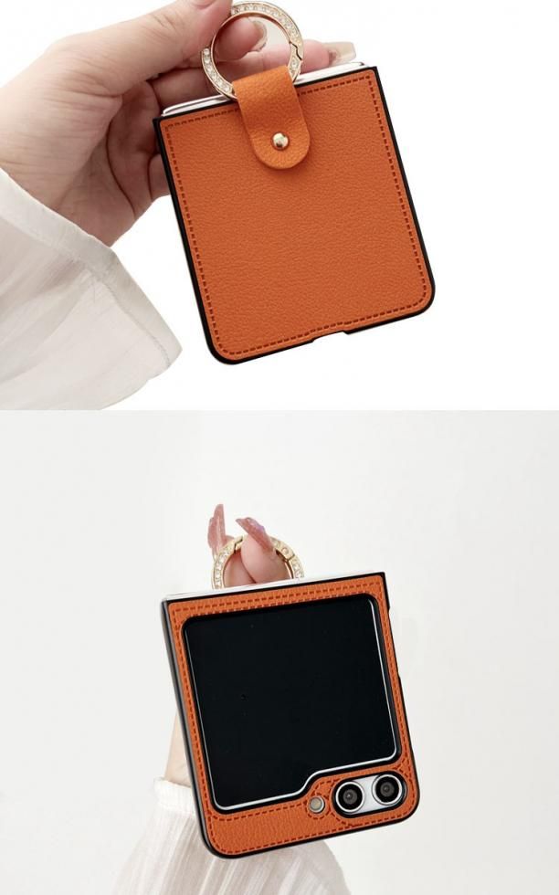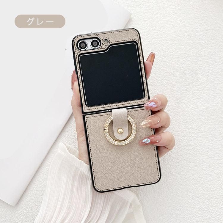 Galaxy Z Flip6 ケース / カバー 折りたたみ型 片手持ちに便利なリング付き PUレザー ケース スタンド機能