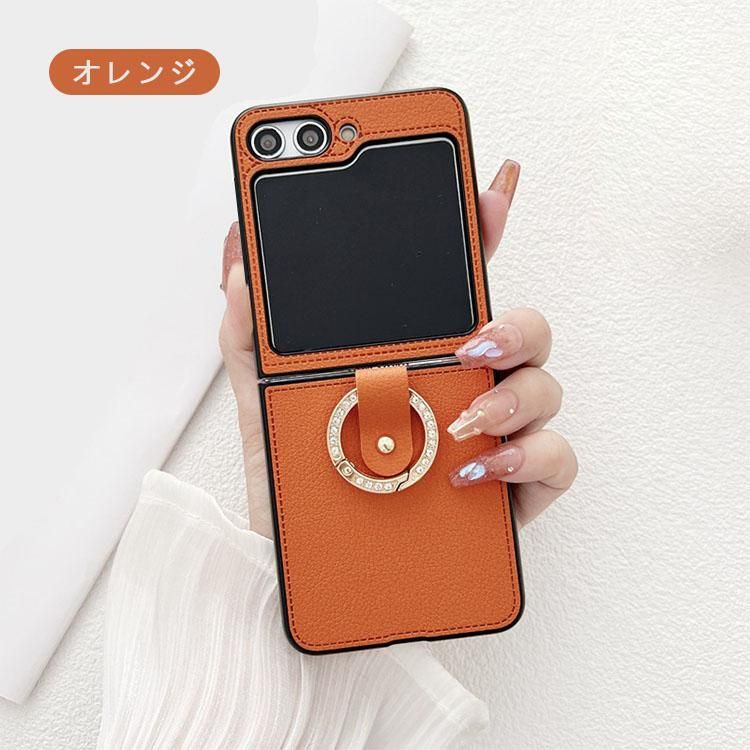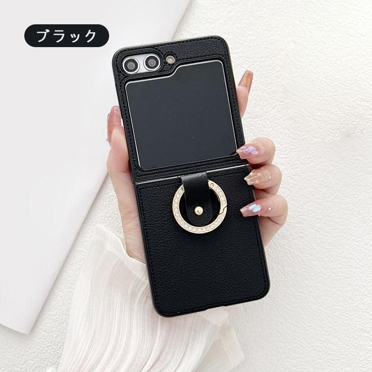 Galaxy Z Flip6 ケース / カバー 折りたたみ型 片手持ちに便利なリング付き PUレザー ケース スタンド機能 Samsung ギャラクシー Z フリップ6 アンドロイド スマートフォン/スマホケース/カバー