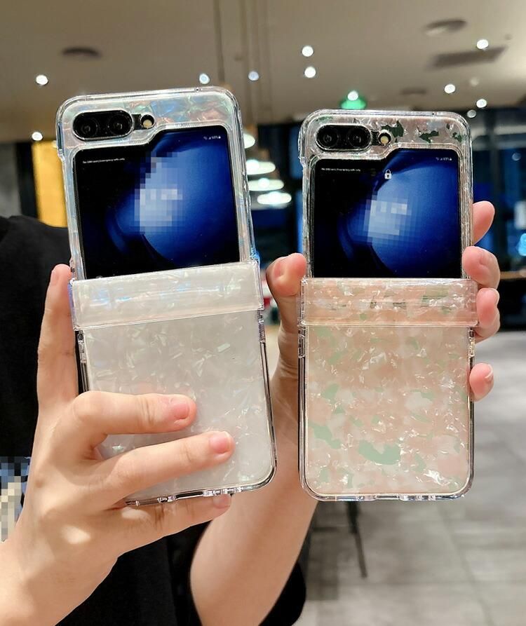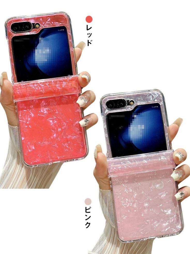 Galaxy Z Flip6 ケース / カバー 折りたたみ型 貝殻風模様 ストラップ穴 Samsung ギャラクシー Z フリップ6 可愛い キラキラ お洒落