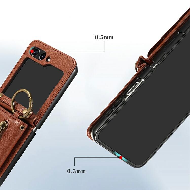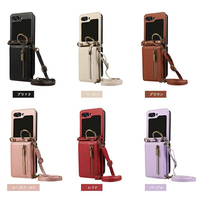Galaxy Z Flip6 ケース / カバー スマホショルダー 折りたたみ型 ショルダーストラップ 肩掛けベルト付き 長さ調節可能 カード収納 リング付き PUレザー