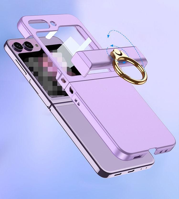 Galaxy Z Flip6 ケース カバー 折りたたみ型 持ち手 落下防止 片手操作 取っ手 リング付き サブディスプレイ液晶保護フィルム 強化ガラスフィルム付き 保護ケース
