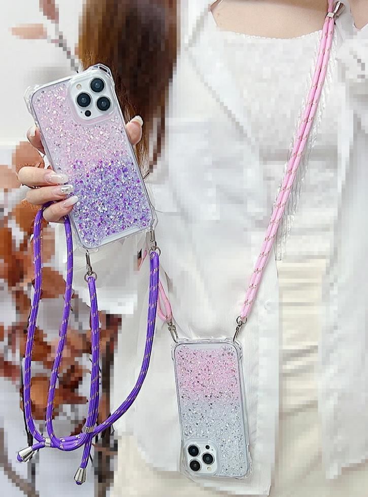 iPhone16 ケース スマホショルダー カバー TPU + プラスチック ショルダーストラップ 肩掛けストラップ付き 角 保護 コーナーバンパー