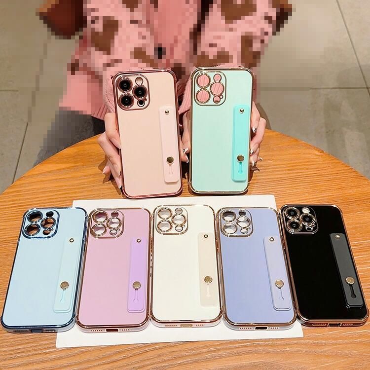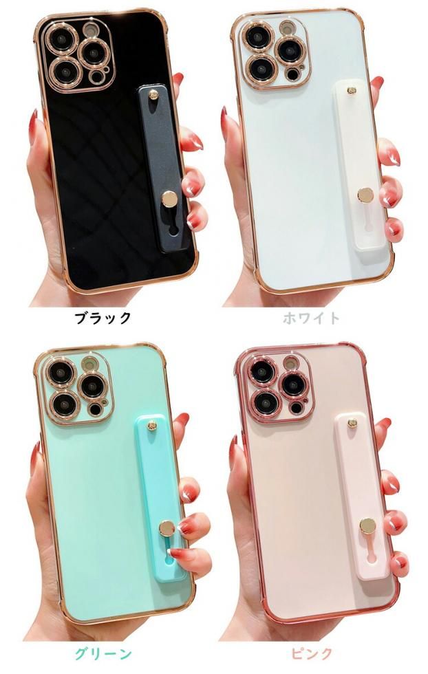 iPhone16 ケース カメラ保護あり カバー メッキ TPU ソフトケース 持ち手 落下防止ベルト スマホベルト 片手操作 取っ手 角 保護