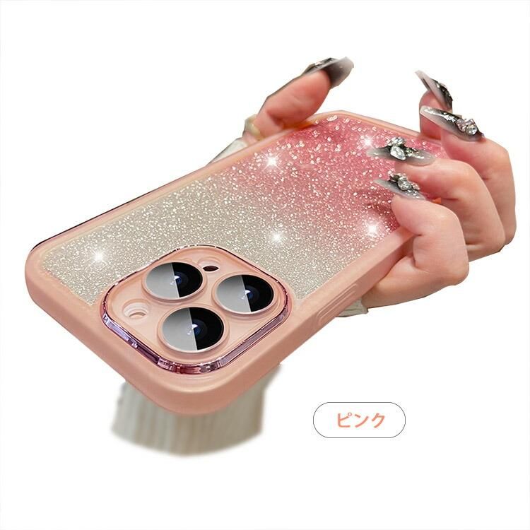 iPhone16 ケース 耐衝撃 カバー カメラ保護あり TPU グラデーション 可愛い お洒落 かわいい グリッター