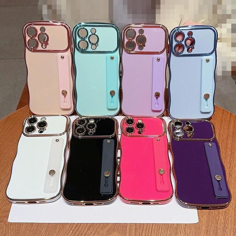 iPhone16 ケース カメラ保護あり 波状 カバー メッキ TPU ソフトケース ウェーブ 波型 なみなみ 持ち手 落下防止ベルト スマホベルト 片手操作 取っ手