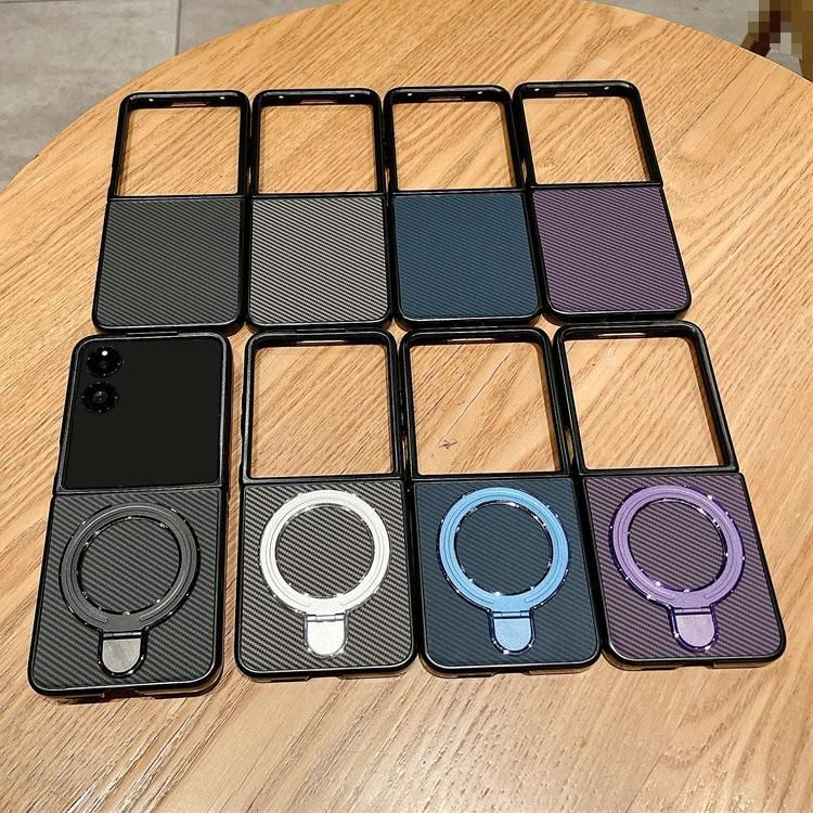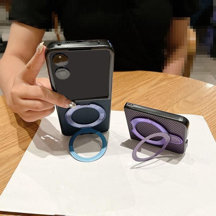 Xiaomi MIX Flip ケース カバー 折りたたみ型 プラスチック カーボン調 分離型スマホリング付き Qi充電 ワイヤレス充電 対応 ハードケース