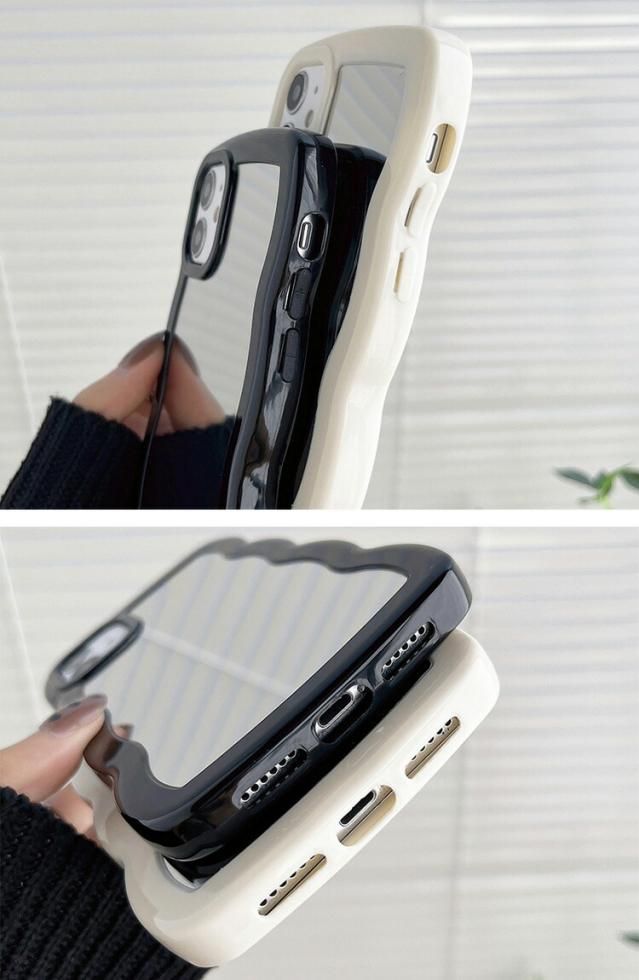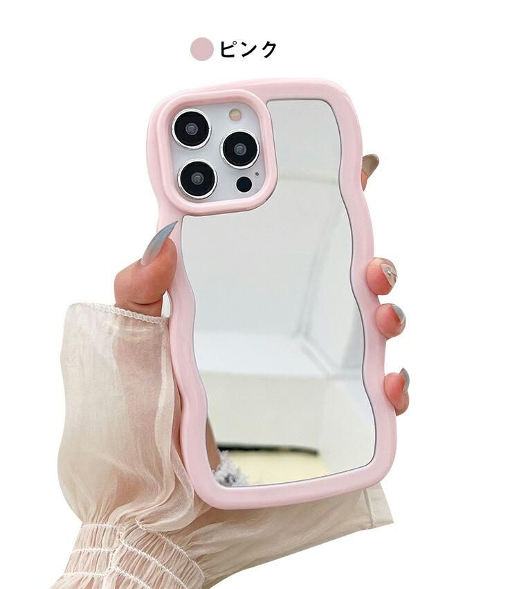 iPhone16 ケース iPhone 16 Plus/16 Pro/16 Pro Max カバー 背面ミラー 鏡面 ウェーブ 波型 なみなみ TPU + プラスチック 2重構造 波状 ソフ