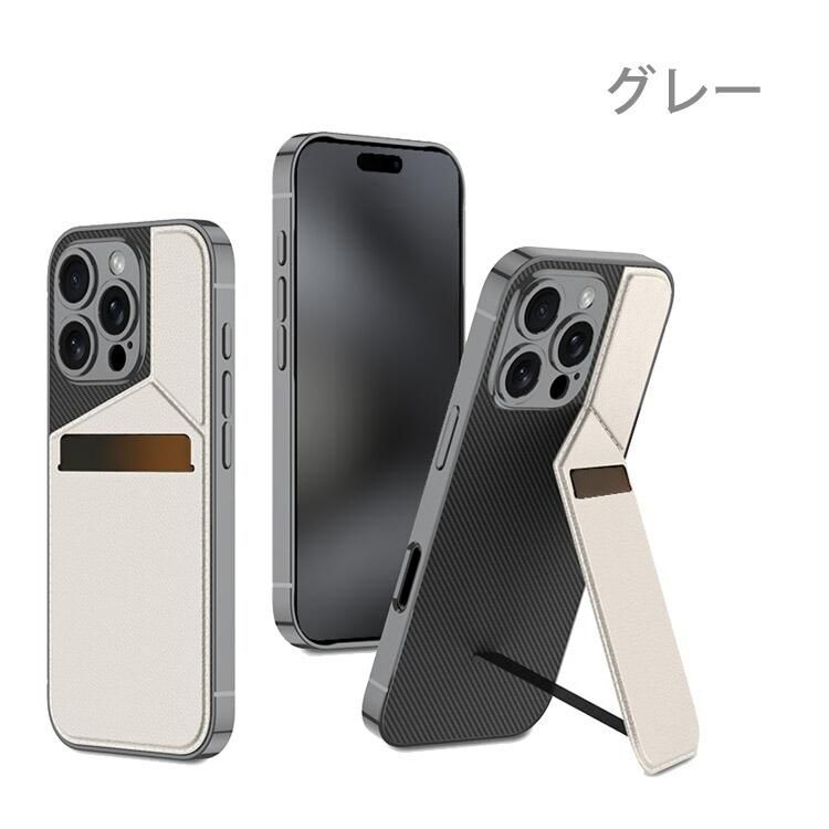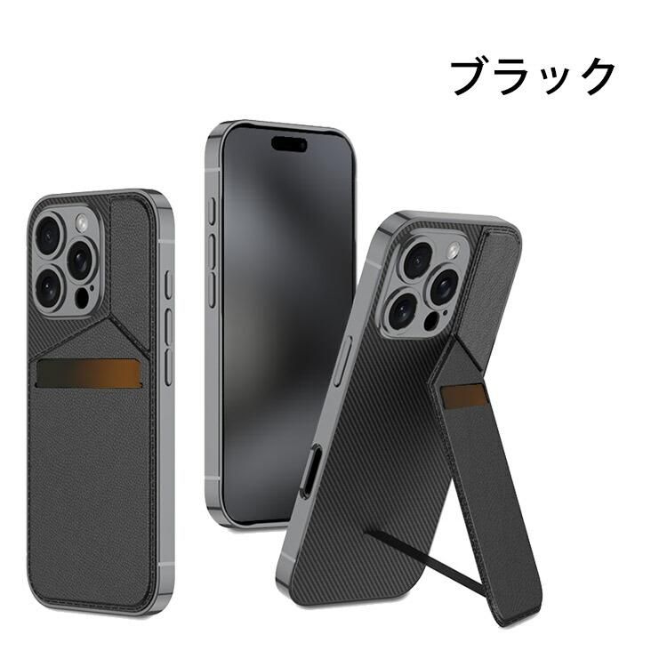iPhone16 ケース カバー スタンド機能 PUレザー メッキ カーボン調 シンプル おしゃれ Apple iPhone 16 Plus/16 Pro/16 Pro Max