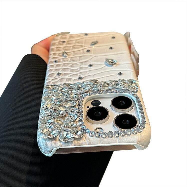 iPhone16 ケース クロコダイル調 ハードケース PUレザー きらきら かわいい 人工ダイヤ クリスタル ラインストーン Apple iPhone 16
