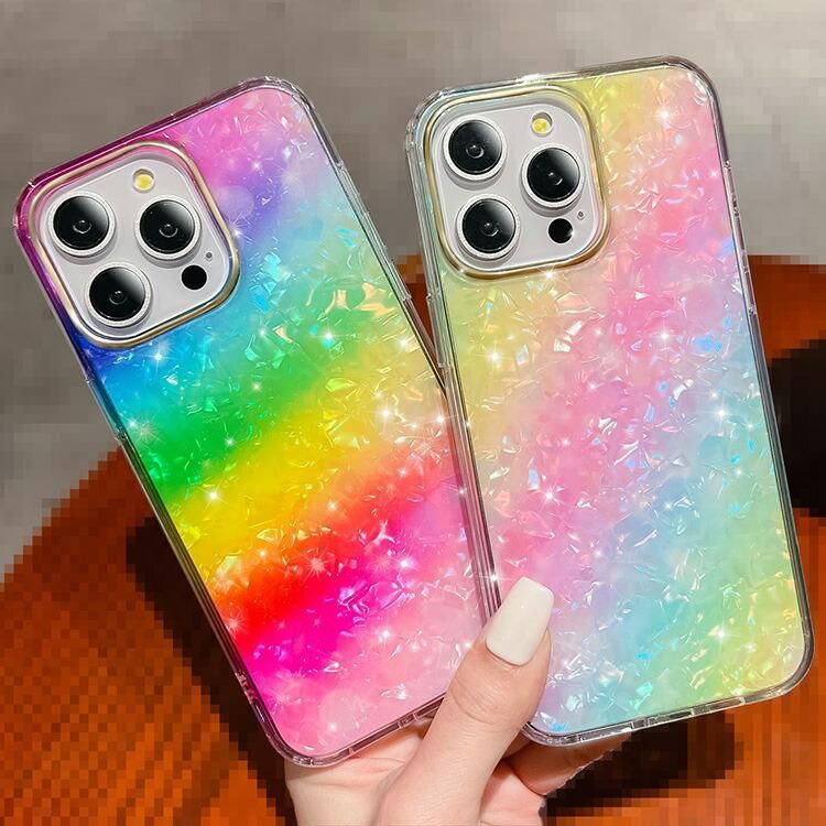 iPhone16 ケース 耐衝撃 カバー TPU + プラスチック 貝殻風 グラデーション 可愛い お洒落 キラキラ おしゃれ かわいい レディース