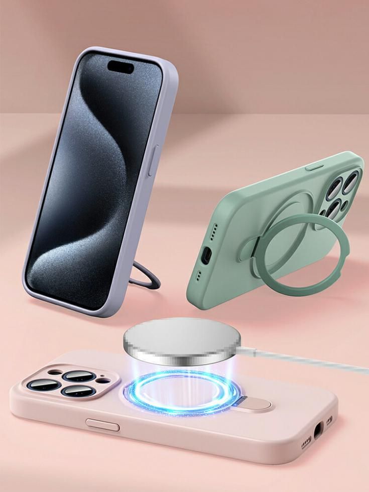 iPhone16 ケース カメラ保護あり かっこいい カバー Qi充電 ワイヤレス充電 対応 TPU ソフトケース スタンド機能 一体型スマホリング付き