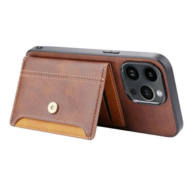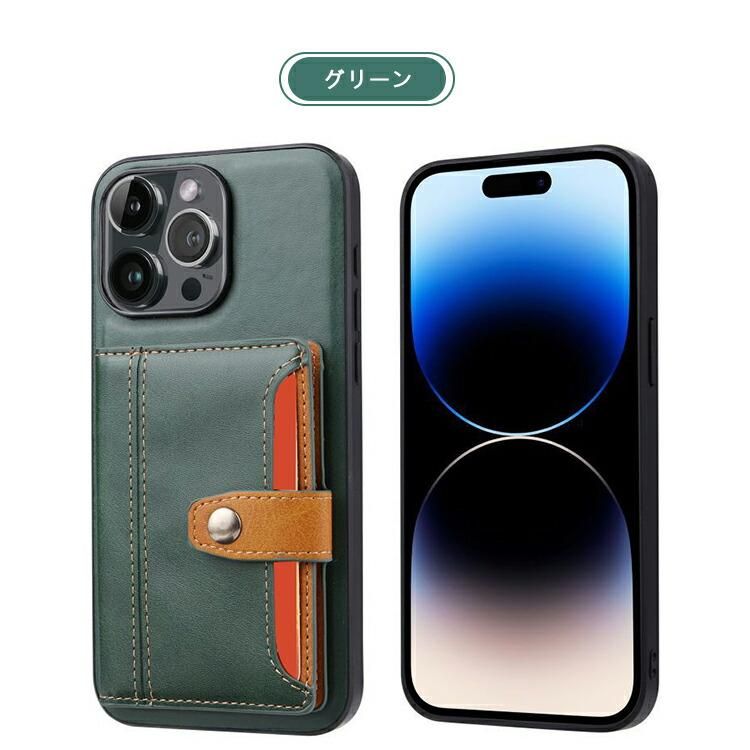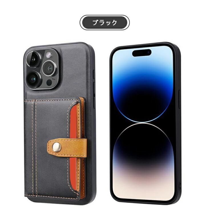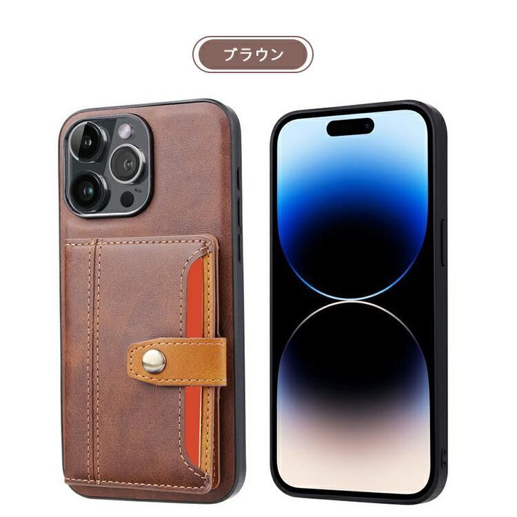 iPhone16 ケース カバー PUレザー 背面ケース スタンド機能 カード収納 ストラップホール付き