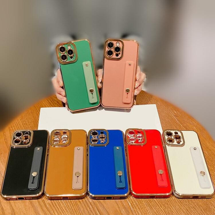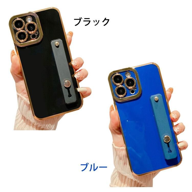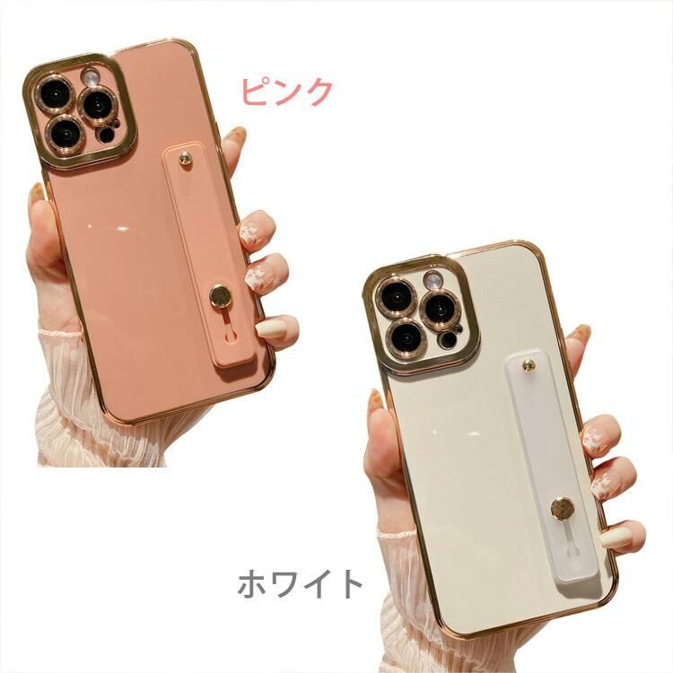iPhone16 ケース カメラ保護あり カバー メッキ TPU ソフトケース 持ち手 落下防止ベルト スマホベルト 片手操作 取っ手