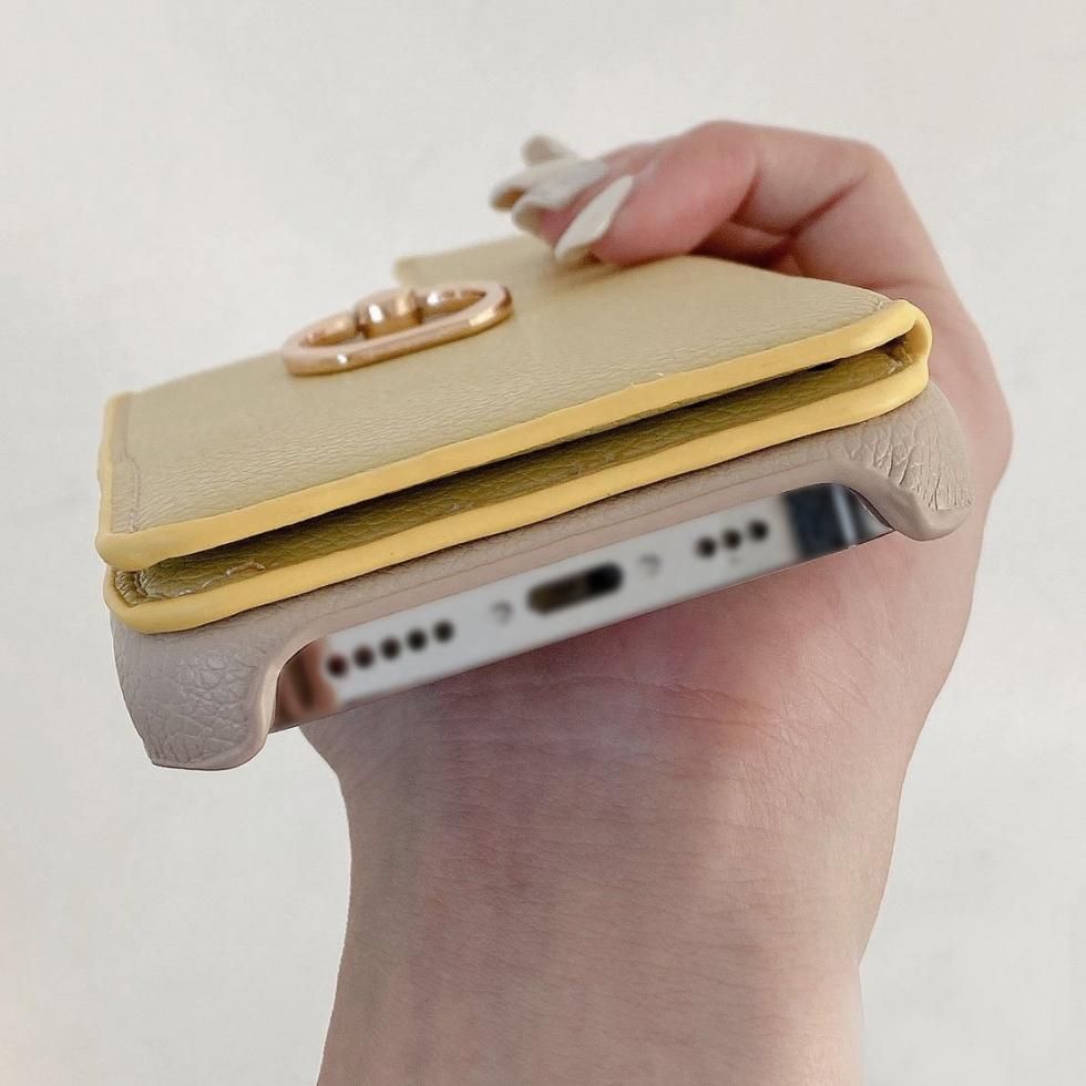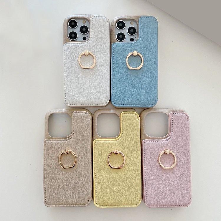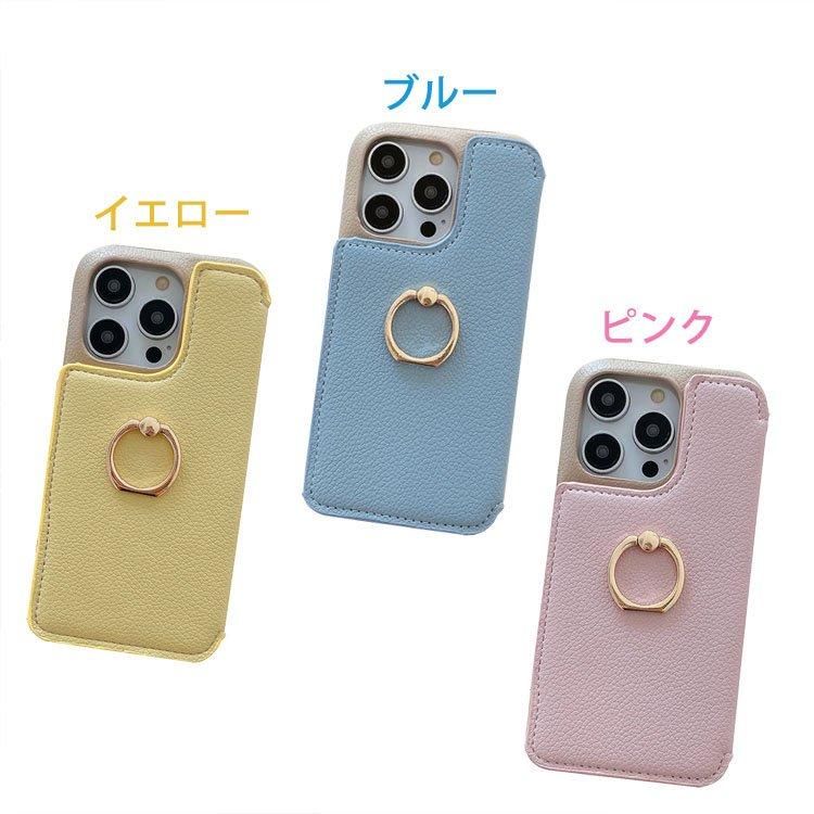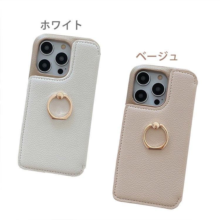 iPhone16 ケース カバー PUレザー 背面ケース 一体型スマホリング付き スタンド機能 カード収納 レディース ミラー付き