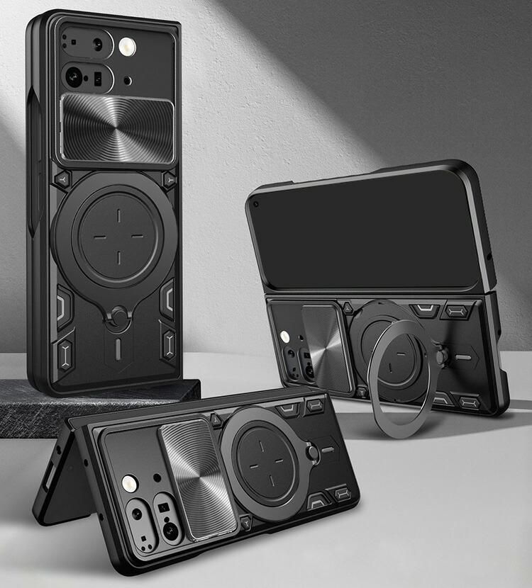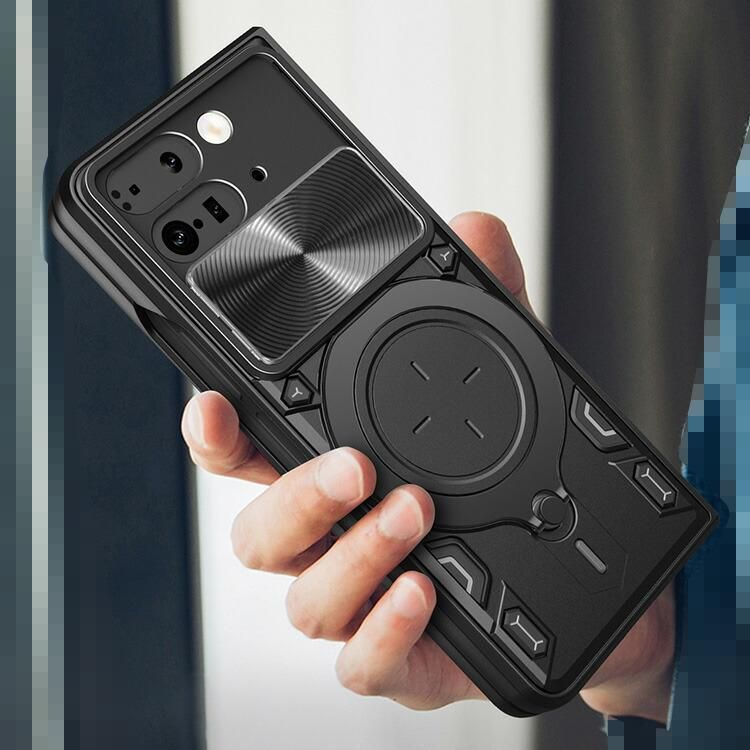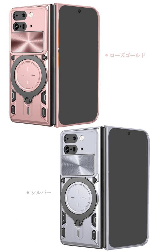 Pixel 9 Pro Fold ケース 耐衝撃 カバー 折りたたみ型 一体型リング付き スライド式カメラレンズカバー付き レンズ保護