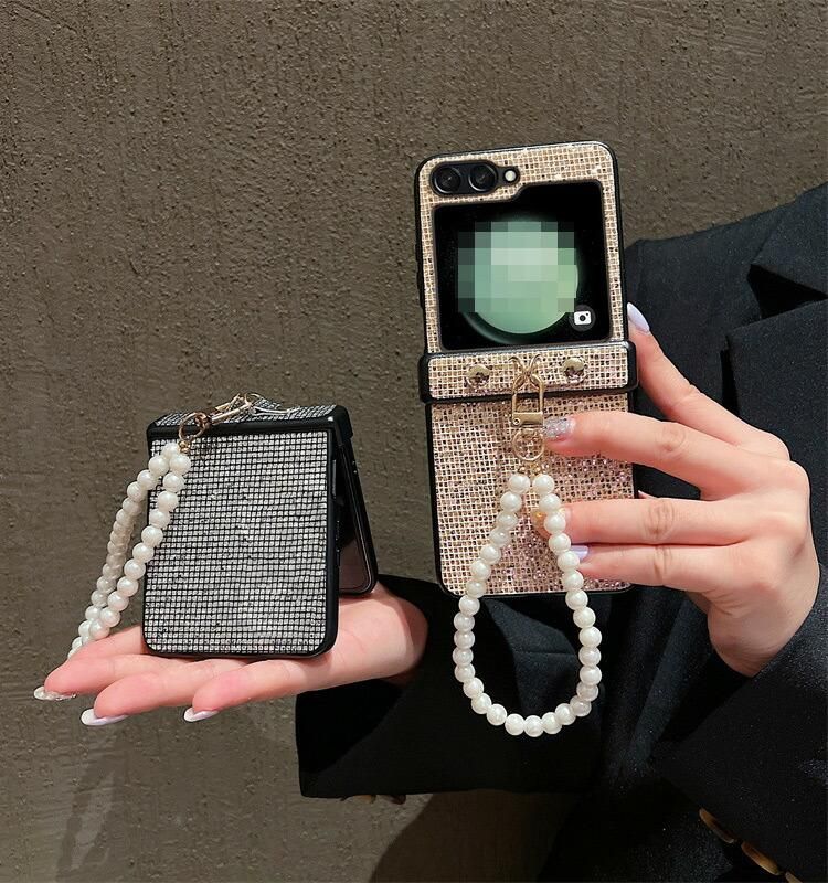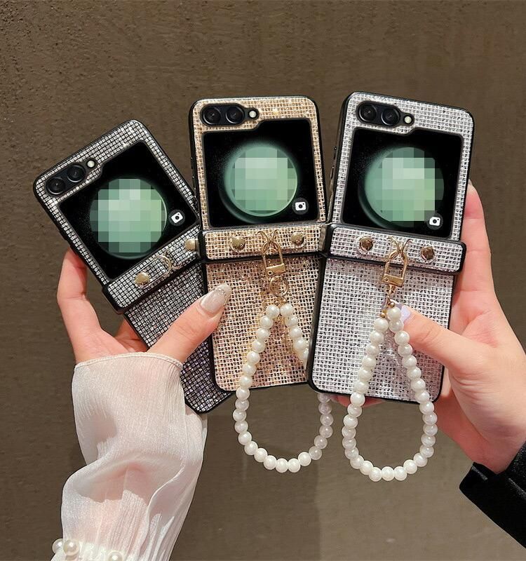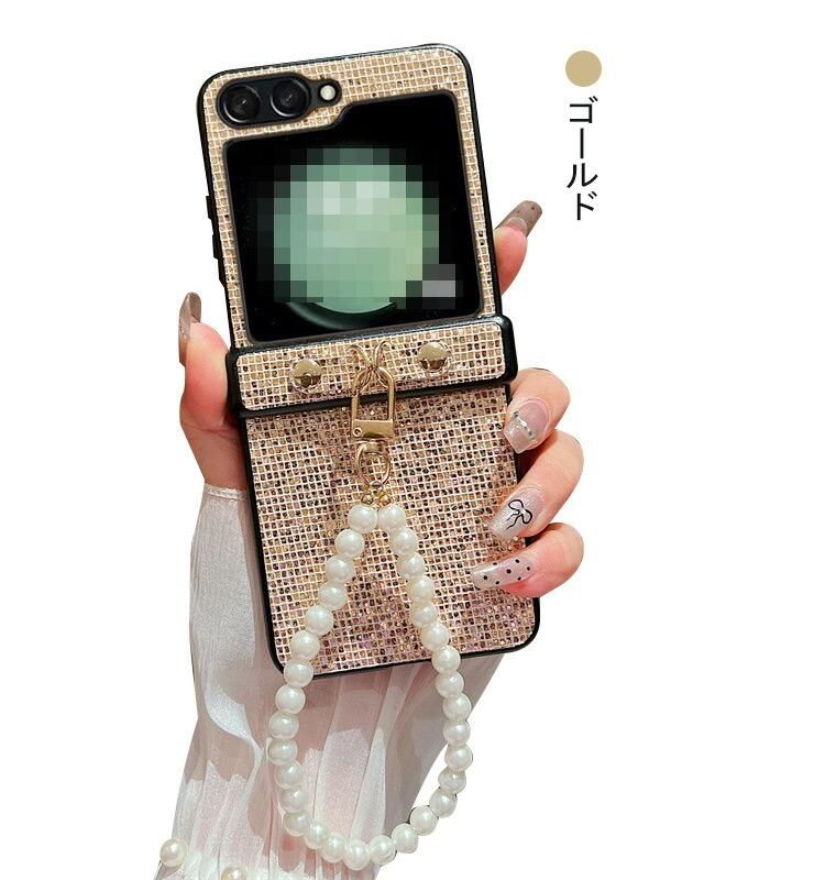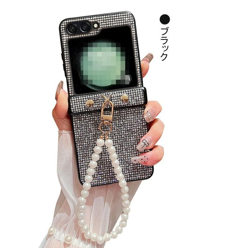 Galaxy Z Flip6 ケース/カバー 折りたたみ型 ストラップ付き ハンド紐 ストラップ 可愛い エレガント レディース ハードケース Samsung ギャラクシー Z フリップ6