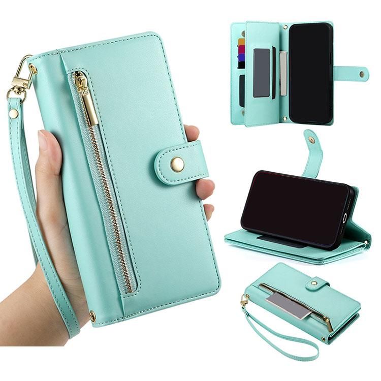Galaxy S24 FE ケース ショルダーストラップ ファスナー付きポケット カバー 手帳型 PUレザー 肩掛けストラップ付き スタンド機能