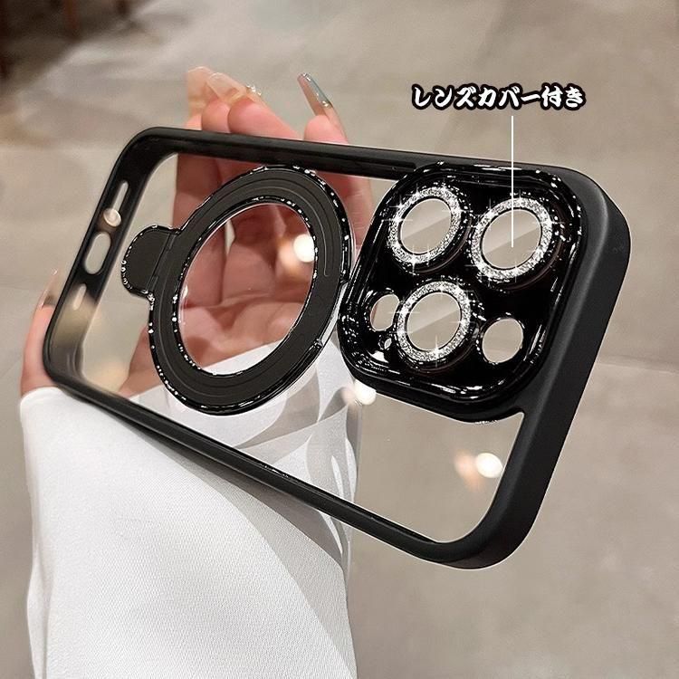 iPhone16 ケース カメラ保護あり ラインストーン カバー クリア 背面透明 TPU ソフトケース Qi充電 ワイヤレス充電 対応 一体型リング付き