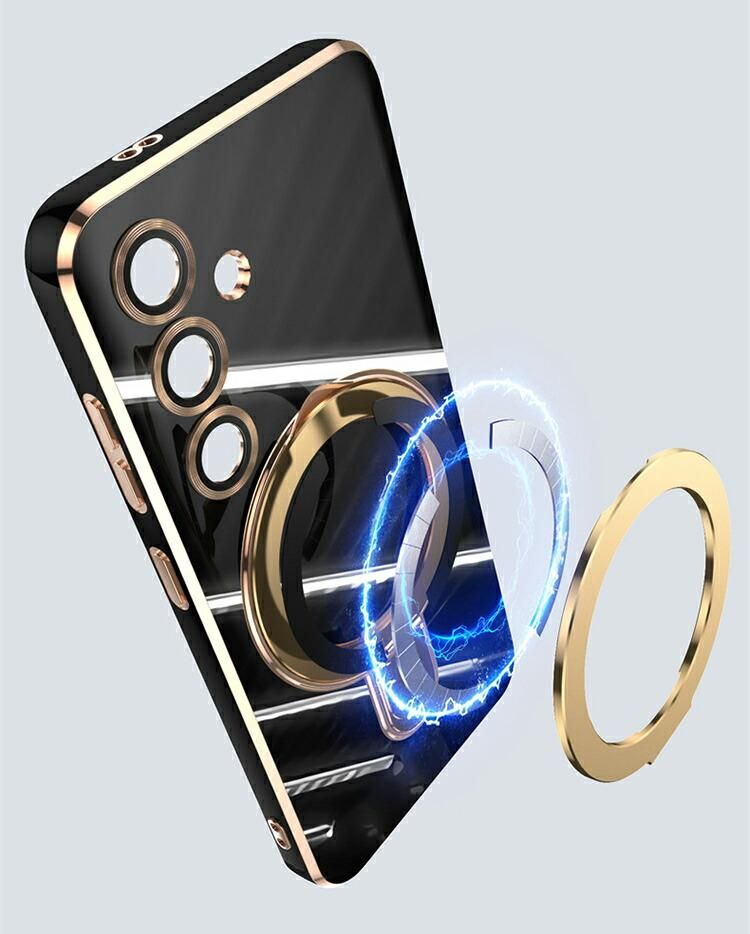 Galaxy S24FE ケース カメラ保護あり カバー TPU ソフトケース 一体型リング付き シンプル ストラップホール付き 背面ケース