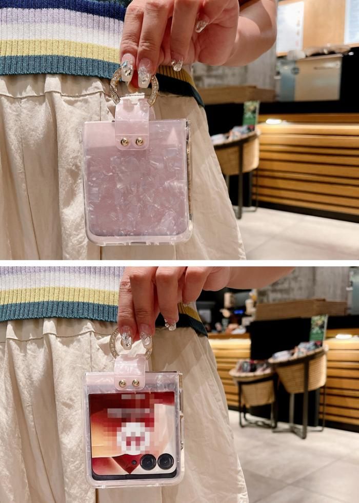 Moto Razr 50/50s ケース Razr 50 Ultra カバー 折りたたみ型 貝殻風模様 ラインストーン 一体型リング付き Motorola モトローラ レーザー50 / 50 ウルトラ 保護ケース アンドロイド 可愛い キラキラ お洒落
