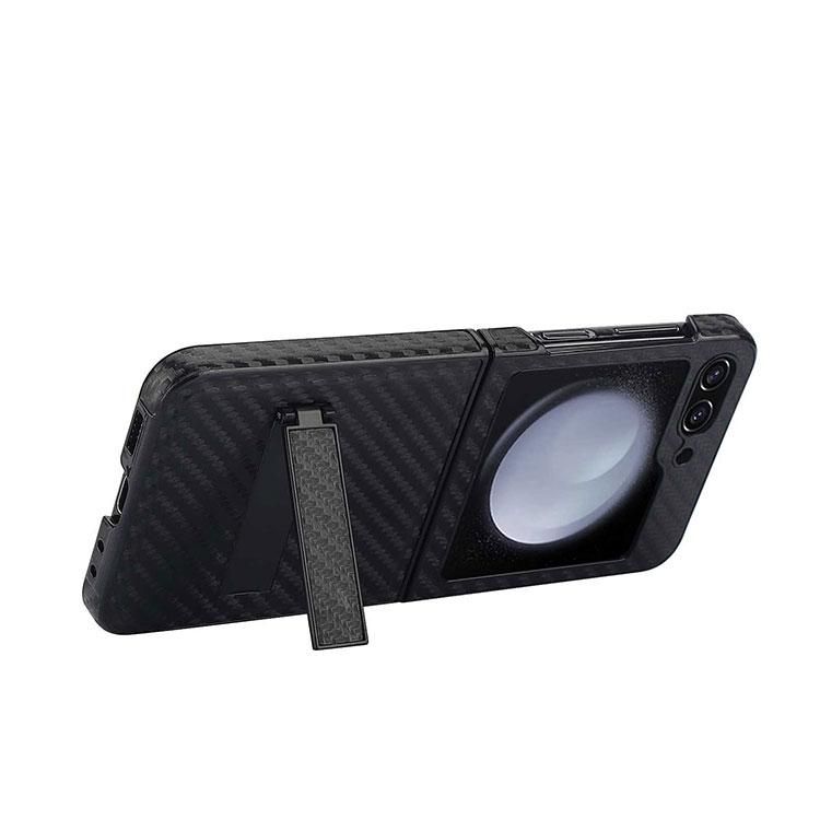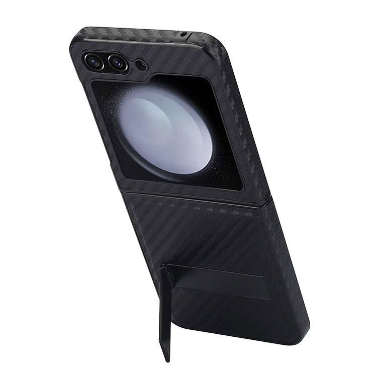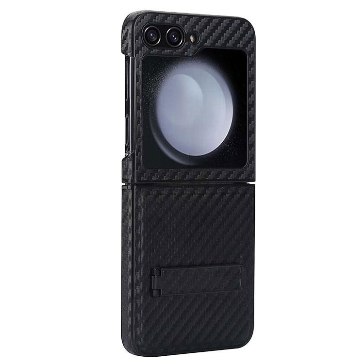 Galaxy Z Flip6 ケース / カバー 折りたたみ型 カーボン調 PUレザー ケース スタンド機能 Samsung ギャラクシー Z フリップ6 スマートフォン/スマホケース/カバー