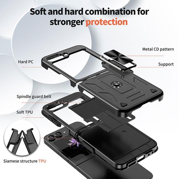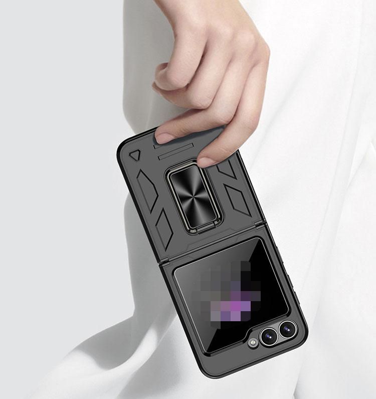 Galaxy Z Flip6 ケース カバー 折りたたみ型 一体型リング付き マグネット式車載ホルダー対応 2重構造 スタンド機能 Samsung サムスン ギャラクシー Z フリップ6 ス