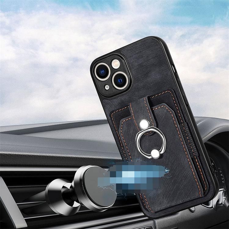 iPhone16 ケース カバー PUレザー 背面ケース 一体型スマホリング付き ストラップ付き カード収納 Apple iPhone 16 Plus/16 Pro/16 Pro Max ア