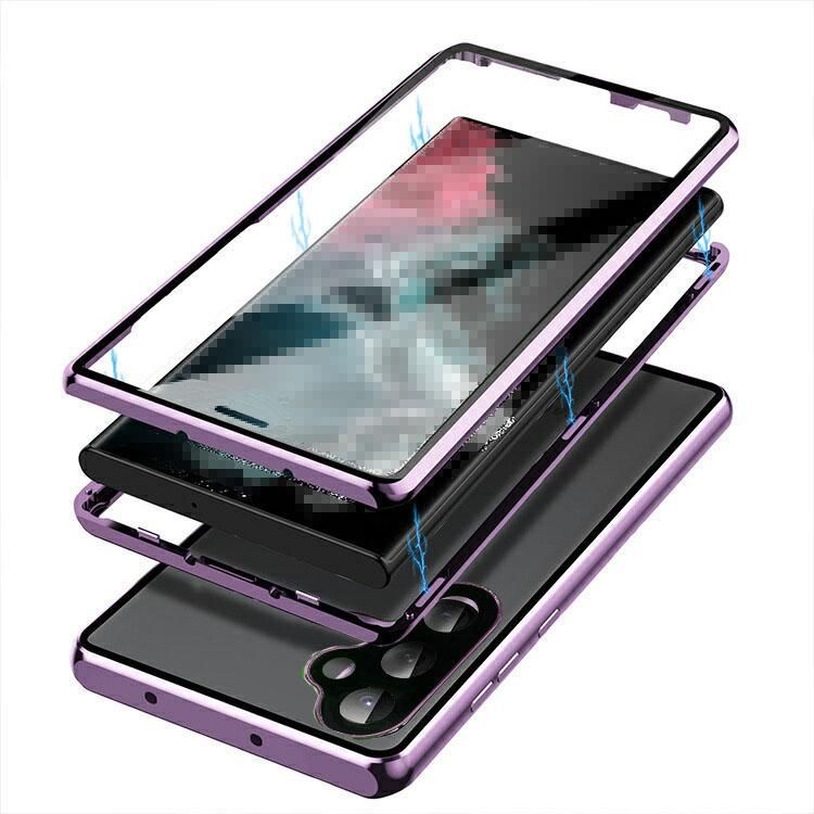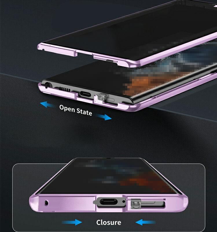 Galaxy S23 FE ケース アルミ バンパー かっこいい アルミバンパー クリア 透明 両前後強化ガラス マグネット式装着 Samsung サムスン ギャラクシー S23 FE