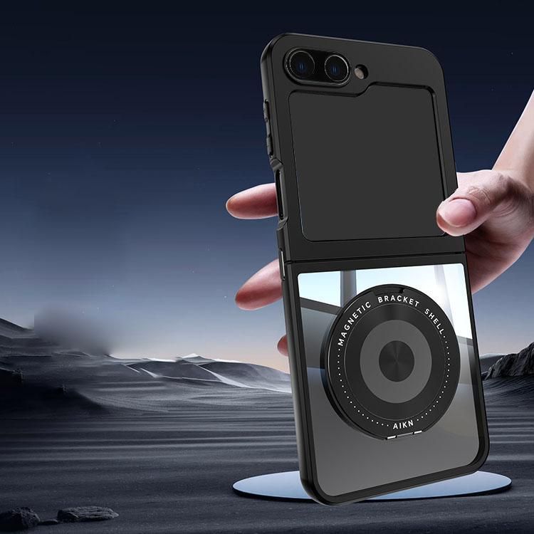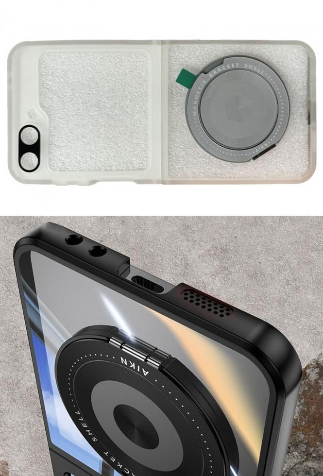 Galaxy Z Flip6 ケース クリア スリム シンプル 耐衝撃 背面透明 TPU 一体型スマホリング付き スタンド機能 Qi充電 ワイヤレス充電 対応