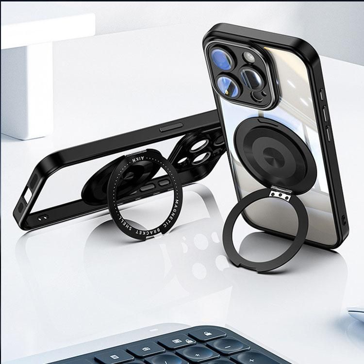 iPhone16 ケース クリア スリム シンプル 耐衝撃 背面透明 TPU 一体型スマホリング付き スタンド機能 Qi充電 ワイヤレス充電 対応 iPhone 16 Plus