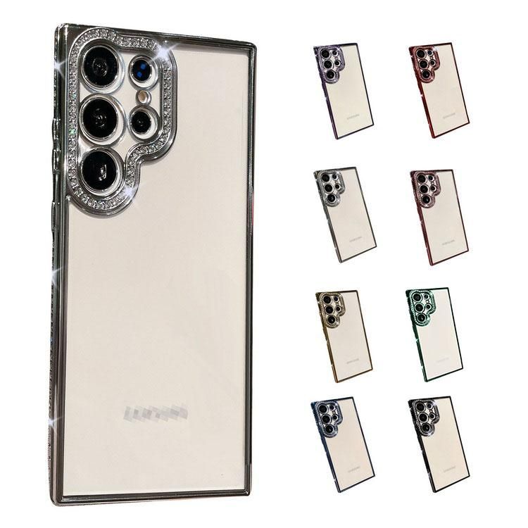 Galaxy S24 ケース カメラ保護あり ラインストーン メッキ TPU ソフトケース ストラップホール付き おしゃれ かわいい レディース S24+/S24 Ultra Samsun