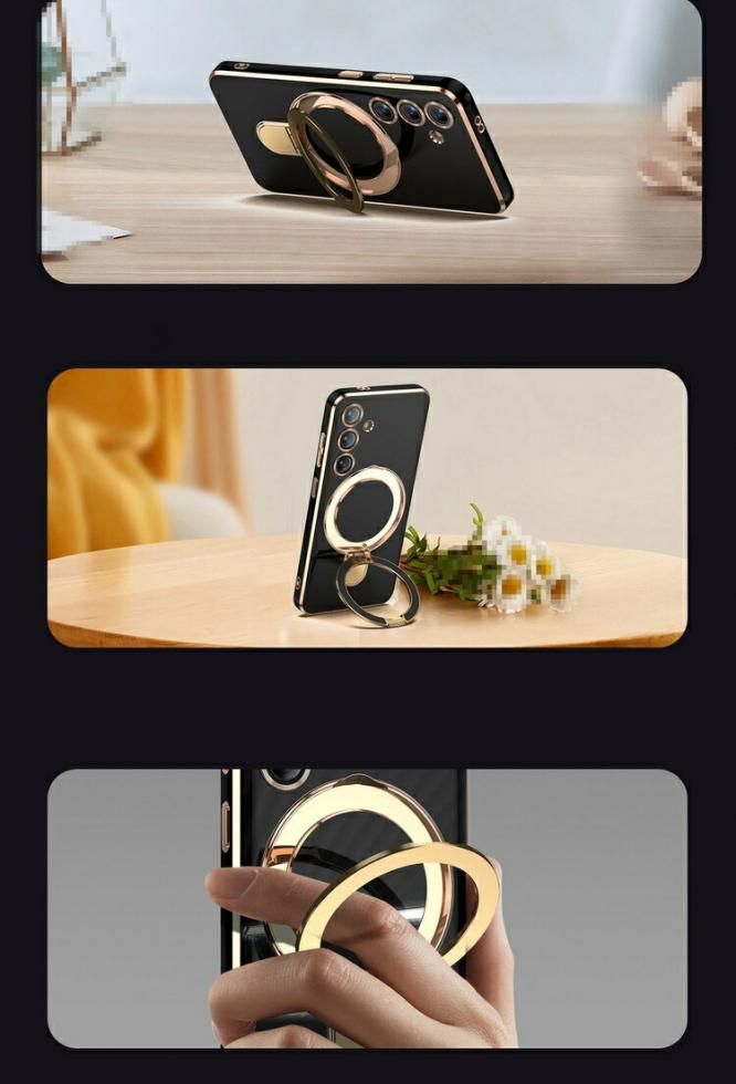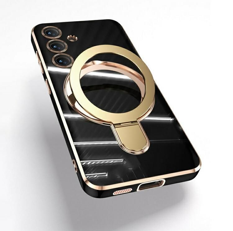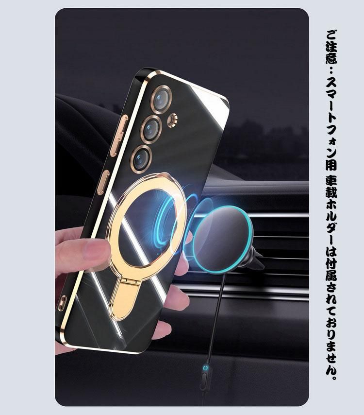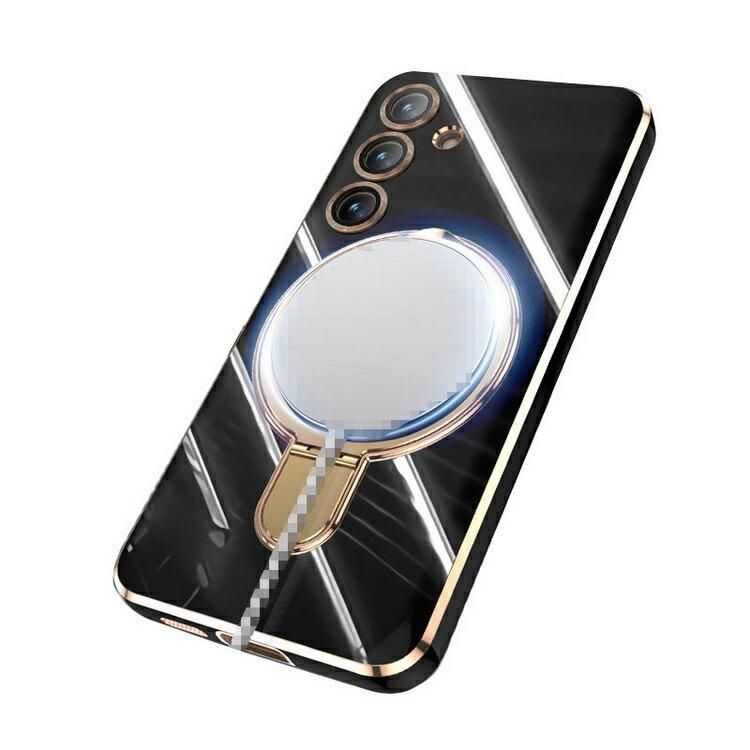 Galaxy S24 ケース/カバー S24+/S24 Ultra Qi充電 ワイヤレス充電 対応 メッキ 一体型リング付き スタンド機能 マグネット式車載ホルダー対応 ストラップ穴 TP